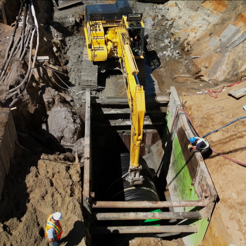 The unstable clay soil conditions further complicated excavation and backfilling, demanding a solution that could adapt to poor ground stability. Adding to the complexity, the work had to be carried out while maintaining full operation of active municipal services, including the aqueduct and sanitary sewer lines.